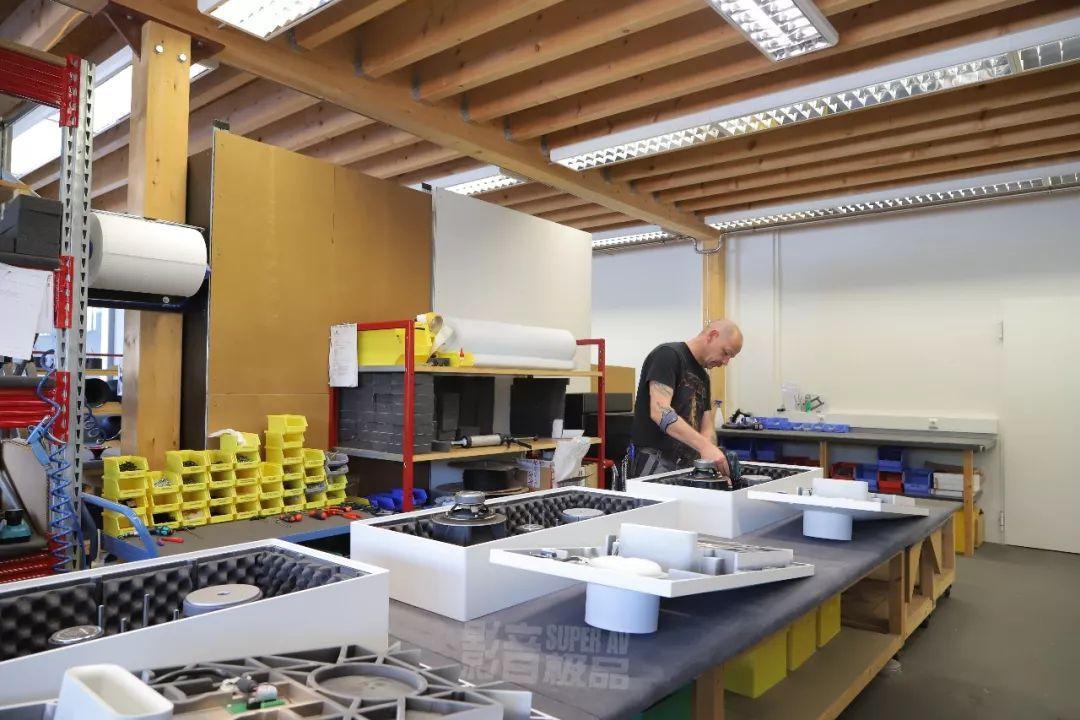 陳列室和車間工廠是連通的,能直接進入製造基地。當天我們從製作喇叭號角,到單元,再到有源功率模組的設計製作,甚至包裝及倉庫等,都有所了解。