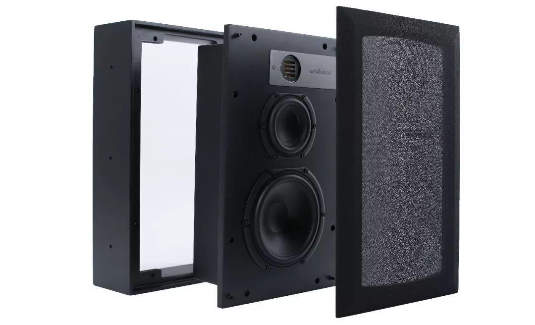 環繞揚聲器方面,設計師選用了uandksound(英國之聲)最新的M610-IW定製產品,這款產品最大的特點是十分方便嵌入式的安裝操作,因此用家希望通過這款揚聲器能達到更貼合牆面的效果。