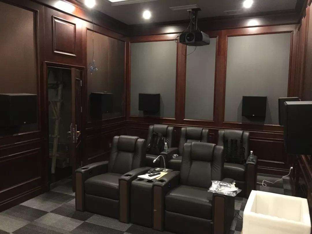 同时,由于影院比例较长,为了让主箱到环绕不出现跳跃感,我们采用了双侧环绕的配置,虽成本略显奢侈,但事实证明,带来的整个声场连贯性和包围感,是我们在不少更大的视听室或者展厅也很少感受到的。