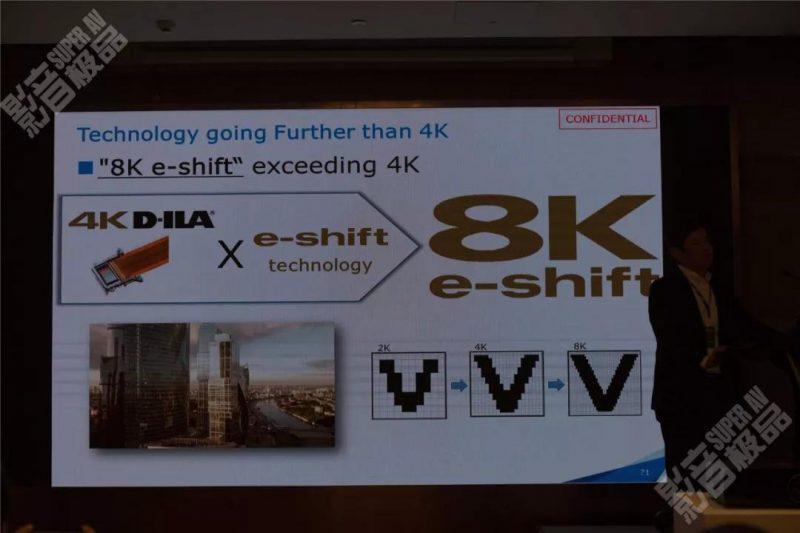 用物理4K芯片,经过JVC专长的e-shift技术,使其达到8K的解像度