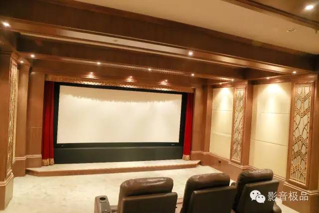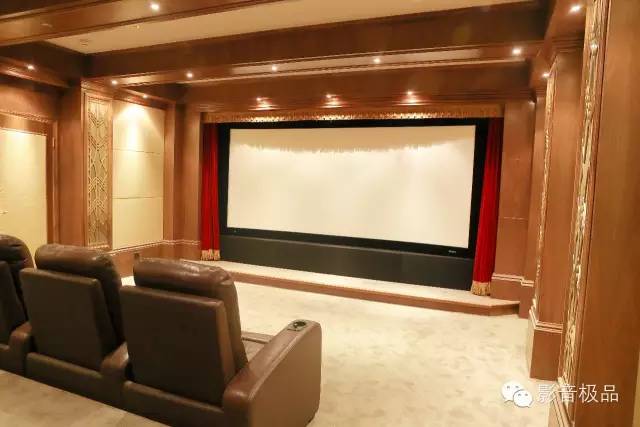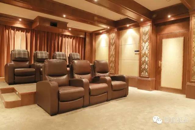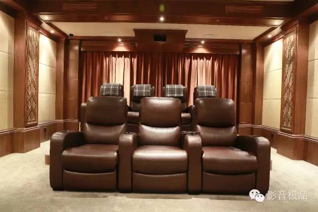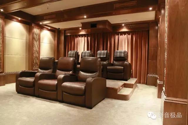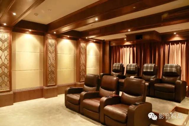 房间在布局上,也华尽心思。墙上的罗马柱用的是美国TK专门定制的一块声学材料,它保证了声音和美学完美结合!整个的色调是以深色为主,稳重而高雅!这个房间是2012年5月份完工,当时和现在都有很多圈内同行来学习和参观!而毅锋时尚家是在1998年开始做影音行业的!成为深圳最早打造私人影院房间的厂家之一!