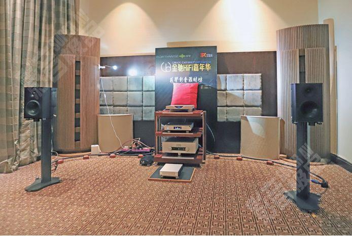 黄信:首先很感谢凌智音响举办了这次非常特别的活动。我在展房以较接近大部份烧友居家环境,进行了扬声器的摆放方式。现场大家可以看到我是比较接近后墙的。但却调试出有大扬声器的气势与庞大的音场空间感。