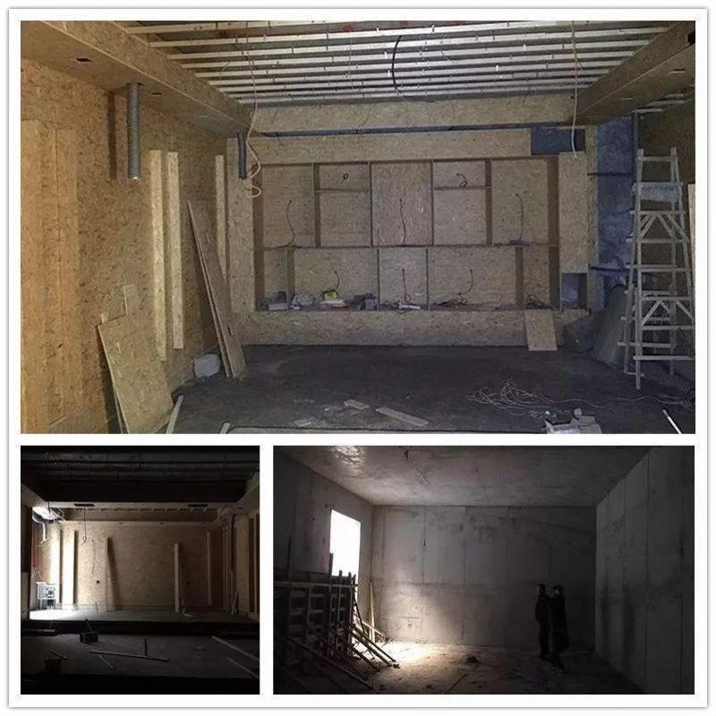 整體喇叭配置,靈敏度與功率的匹配,已經很輕鬆就可以達到想要的聲壓級,駐波點相應增多。配置上加了一台空間管理器管理喇叭相位和EQ,採用多種聲學材料處理聲音,控制混響時間。房間五個面做了簡易彈簧減震結構全頻吸聲,同時主要是在800Hz以上做的擴散,增加聲音的清晰度。100Hz-250Hz加大吸收減少房間的駐波。