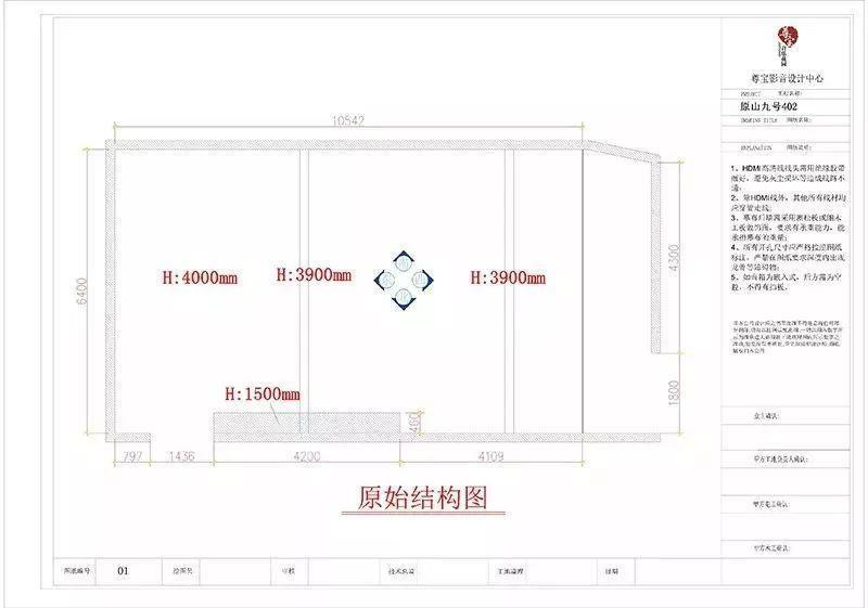房間在聲學比例上存在問題,1:1.95幾乎成了倍數關係,我們把空間縮短了1.45米,又做了一個音障牆。側牆有個地墩距離側牆600mm,切掉600mm拉平做聲學結構,利用前方空間做了設備機櫃。