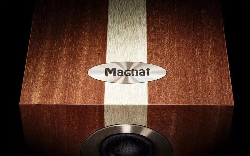銘刻着Magnat品牌logo的橢圓形香檳金金屬牌鑲嵌在音箱的頂部前端,顯得十分精緻。