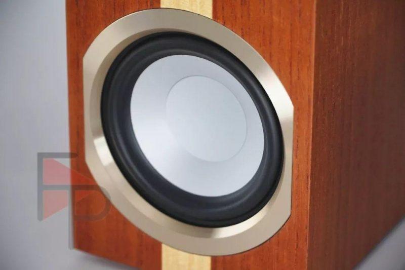 可能是考虑到声音的表现和外观的统一性,中低音单元的外侧,也添加了一个外形一致但尺寸变大的金色Kapton声圈,Humidor的重低音单元还使用了Kapton声圈,据悉,Kapton声圈能够最大限度地减少了涡流损耗,确保最低的中频失真率,并且优化单元效率。
