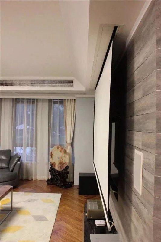 如此一個隱藏式的私家影院就算完工了,整套影院系統和室內環境完美的融合在一起,讓客廳影院聲音更接近專業電影院效果。