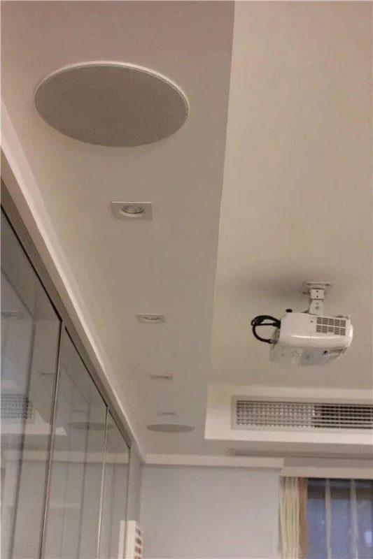 兩隻小巧精緻的RCS 650環繞安裝在後牆吊頂內,為了讓R650更容易隱身於牆面之中,原廠使用了白色無邊框網罩設計,可以和牆面建材完美貼合不留痕迹。
