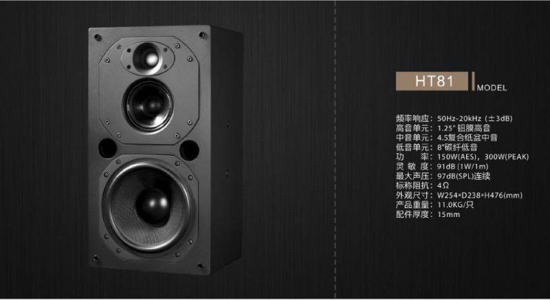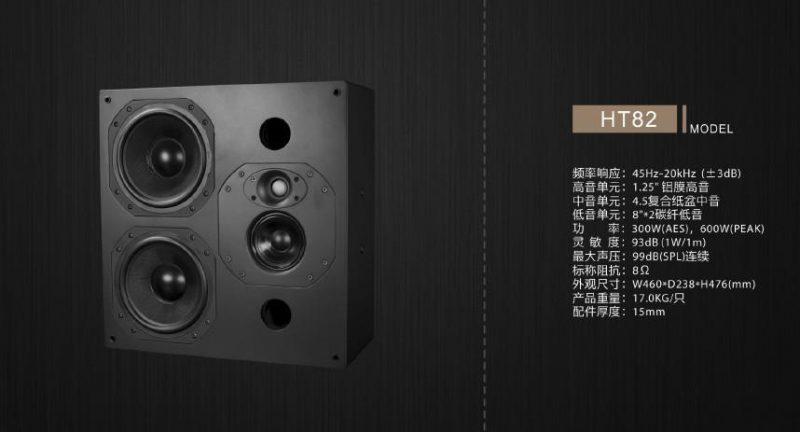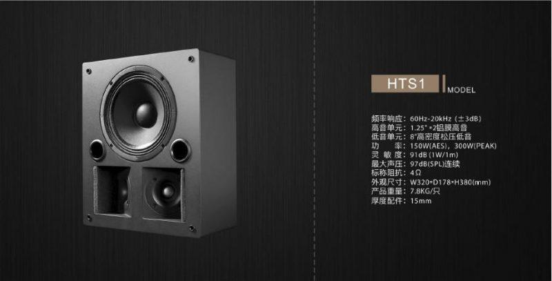 HTS2,为Eliek Acoustic HTS1环绕扬声器改良而来,延续HTS1的双1.25英寸铝膜高音单元的设计,双极/偶极可切换,中低音单元为新的6.5英寸碳纤维单元,灵敏度90dB(1W/1m),频率响应为75Hz-20kHz(±3dB),每只重6.2KG。相比起HTS1,这款扬声器设计上更纤薄,只有148mm(含网罩)的纵深,能够适应更多的定制安装要求。整体长320mm,高380mm