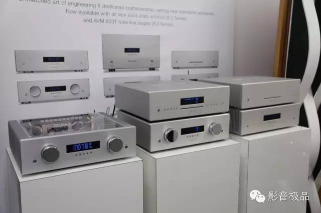 在AVM展房内,展示了众多银色机壳的产品,包括A 6.2、MP 6.2、CD 6.2型号产品