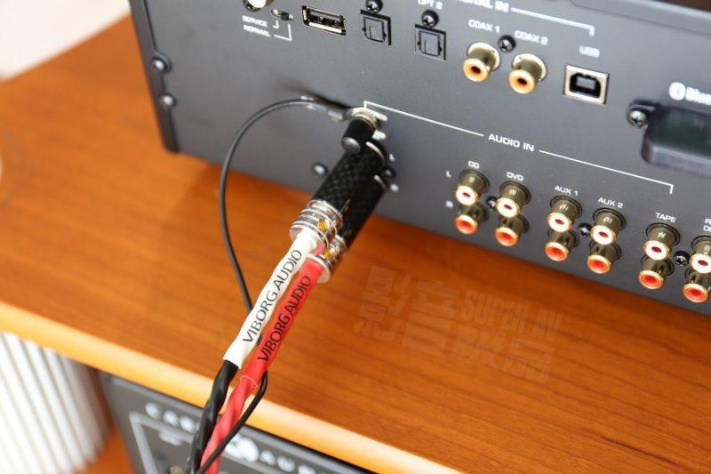 除此之外,有些线材的细节还是值得称赞,例如线材披覆,LC801最外的披覆为编织网,这种编织网能对拉扯特别有好处,对于器材较多和接驳线材较多的玩家,稍微拉伸动作下,编织网都会大大减少阻尼。另外,唱放端的RCA接头处分别使用了红色和白色的热缩管,整齐划一毫无参差,字体清晰无粗糙感。扎线魔术带上同样精致地标有Viborg LOGO,整条线材捧在手上都十分有分量。