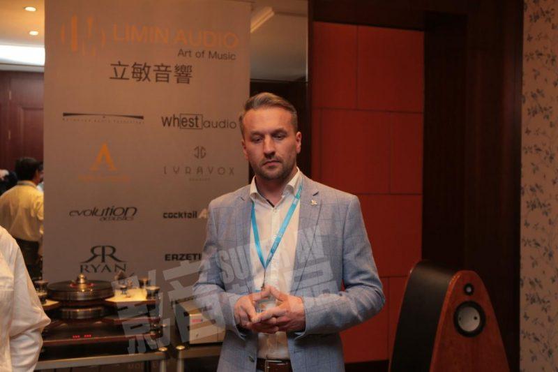 随后,Aida Acoustics创始人兼设计师Mateusz Balabanski先生上台亲力推荐,并由立敏的合作伙伴张冬松先生进行翻译讲解,Aida Acoustics(阿依达)来自波兰,是一个新晋的高端Hi-End扬声器品牌。虽然品牌创立的时间并不长,但是创始人兼设计师Mateusz Balabanski先生以及主创团队却拥有这二十多年的从业经验和资历,长期服务于多个知名品牌扬声器的设计和检测工作。从而也掌握了扬声器制作的核心技术,确保Aida Acoustics(阿依达)的设计走在目前音响行业的前沿。