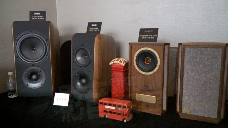 静态展示中的chario Aviator Nobile(左一)、chario Aviator Ghibli(左二)、Tannoy Autograph Mini MKII(右二)