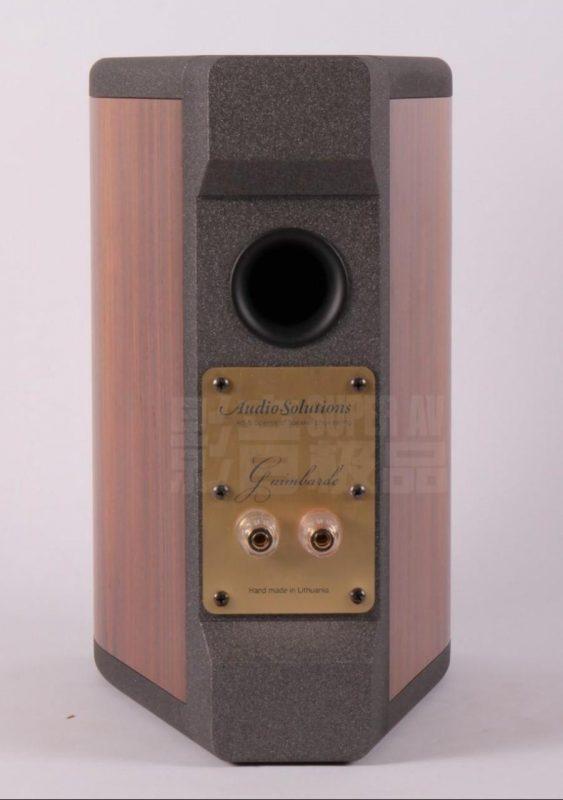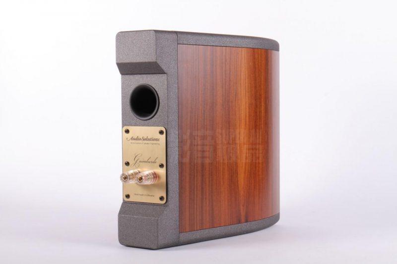 Guimbarde的箱体设计都是延续自其第一代产品——Rhapsody系列的箱体设计。在这个窈窕而又袖珍的箱体上采用2路分音的低音反射式设计,上面搭载了一个25mm的阳极化铝球顶高音单元与一个120mm的轻量化纸盆中低音单元。分频器采用了高端的音频组件与镀金接线柱有效屏蔽,用料之坚足见其诚意,而分频点则设置在了2200Hz。