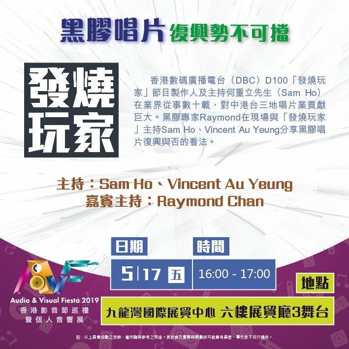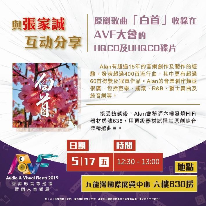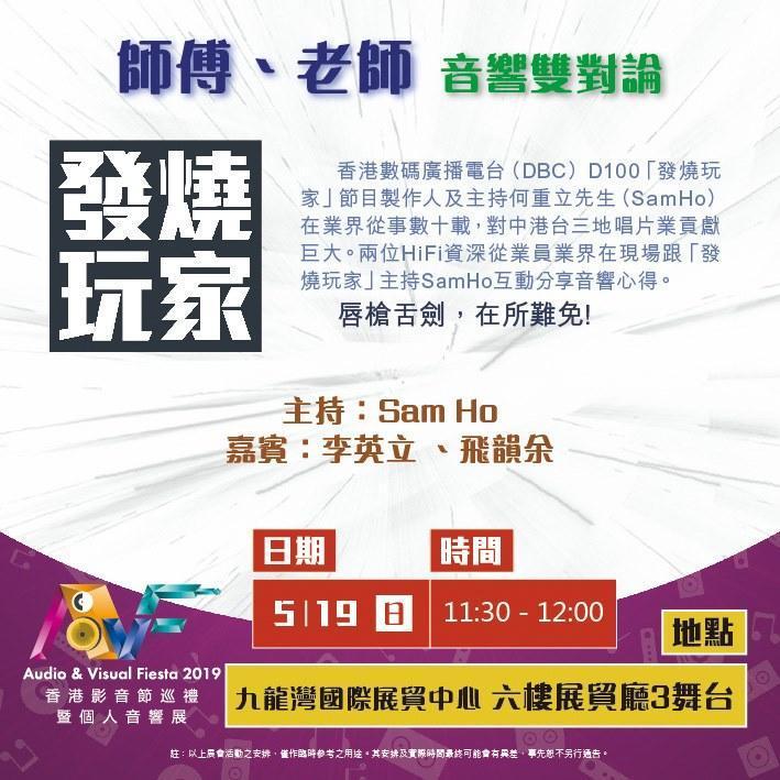與此同時,本屆AVF2019展會紀念大碟「極品 • 天籟」母帶後期製作總監Kent Poon將在展會三天期間分別舉行不同時段的音響講座及交流會,屆時想參加的燒友們記得走進「方浪國際有限公司」634展房啦!