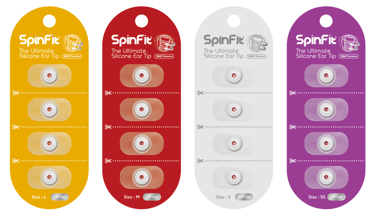 Spinfit耳胶目前包括CP-100和CP-800两个型号,针对不同耳机而设。CP-100导管较粗,能用于大部分的入耳式耳机,包括Sennheiser、AudioTechnica、Sony、AKG、CampfireAudio、UltimateEars等;CP-800设计给细导管的耳机,包括Shure、Westone、Ultrasone等。从ECT酷音韵成为中港澳总代理开始,售卖的SpinFit也将换上全新的包装,以颜色区别耳胶的大小,令用户更加一目了然,买到适合自己耳道大小的耳胶。