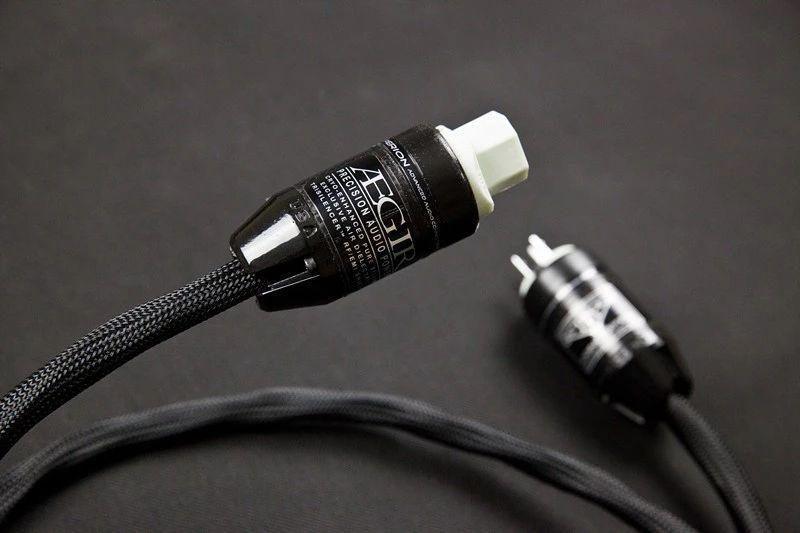 而Aegir电源线的火线和零线则各使用了一根大规格、经冷冻处理的银质Aerostand扁平导体,因为Stage III Concepts坚信银是最好的导体。线材内部用聚四氟乙烯铁氟龙空心管作空气绝缘。Aegir的每根导体和地线均作为独立屏蔽,屏蔽层由全镀铜的碳化尼龙编织而成。插头外壳由高分子聚合物和手工编织的碳纤维构成,可应对20A的电流。