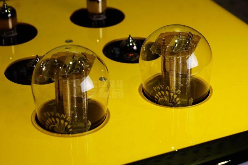顶部则是电子管的插头,Egoista STX分别使用了2只300B、2只6C45Pi和2只6H30Pl,采用零负反馈纯A类放大。每个插座都会标示接驳哪一个电子管,由于插座内嵌在低于面板低一点的位置,孔径大小刚好与电子管的管径接近,这样就能很好地保护电子管。