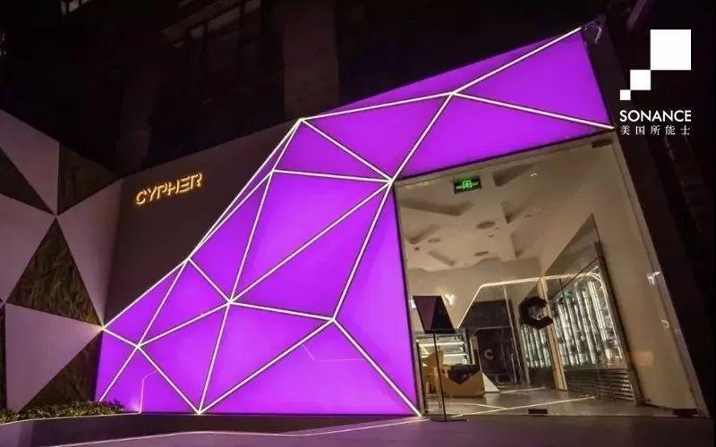 Cypher酒吧位于襄阳南路500号,外形时尚有型,内部装修也是光影熠熠,是新一代的魔都网红打卡胜地。