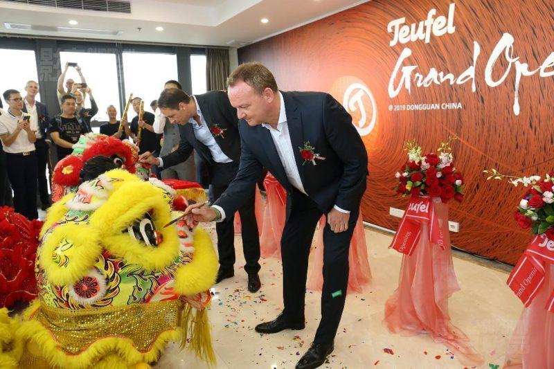 剪彩仪式后,Teufel全球CEO Sascha Mallah和Teufel全球CFO Joachim Wimmers主持醒狮点睛和揭牌仪式