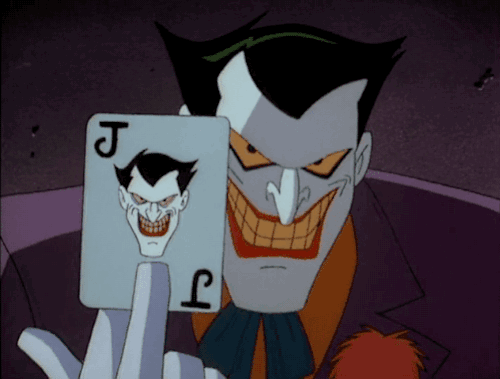 他从手边的扑克牌上找到了灵感,为角色取名为“小丑”(The Joker),并设计出了经典的小丑头像扑克牌作为小丑的概念图。