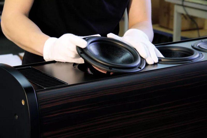 箱体包含了密封的内壳并把传输线黏在其中,整个结构设计让箱体变得非常扎实、沉重,好处是降低箱体谐振的干扰音质的问题。传输线式扬声器有着音染低,音色中性,动态更大的优点,在不同的音压底下,可获得一致的表现,音量增大时,还可以保证有低失真和完整动态。