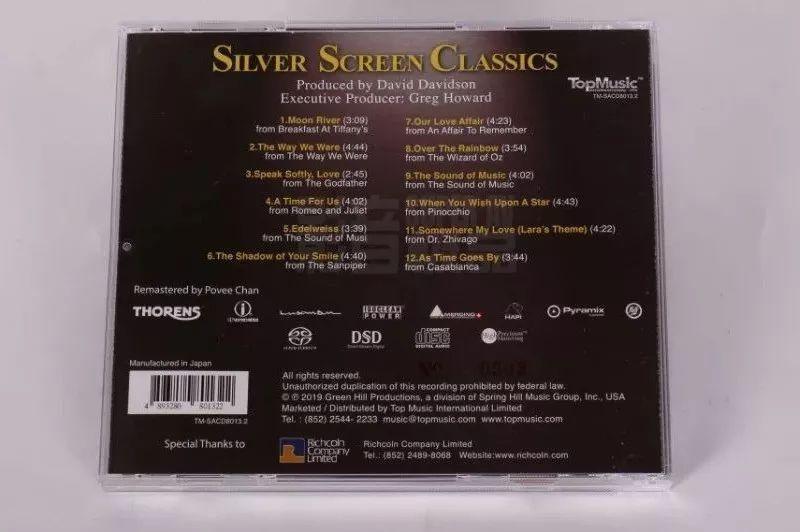 而這次天樂Top Music再次推出由代理商新漢建業和其代理品牌THORENS多能仕冠名的《銀幕經典SA重現》SACD錄音,再度收錄當中經典的銀幕主題曲或插曲,給音樂愛好者提供眾多享受和樂趣。儘管這次以THORENS多能仕冠名的並非黑膠大碟,但是通過SACD我們也能更好感受傳奇、經典和浪漫的一代金曲。