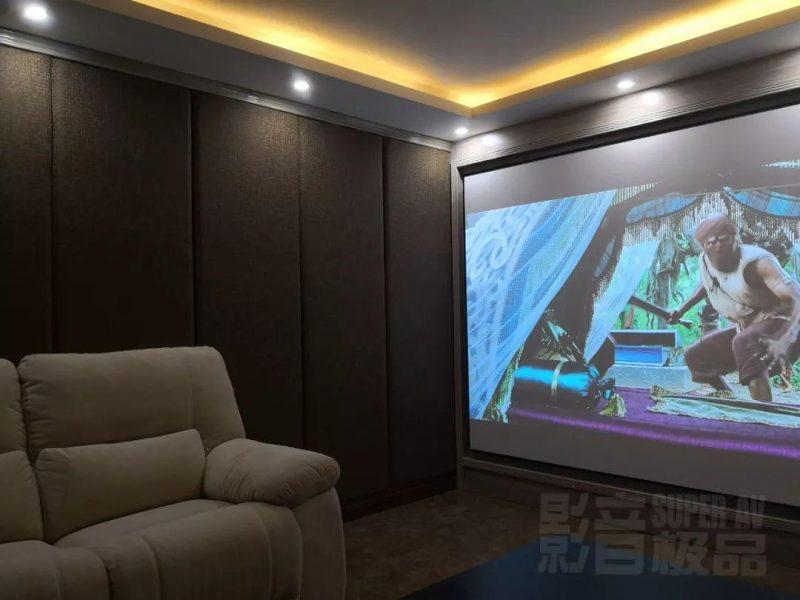 投影方面選用了最新升級的索尼VPL-HW49,採用了索尼旗航機型的Reality Ceration等技術,3D藍牙傳輸,更廣闊的鏡頭移位功能,投影出來的畫面銳利清晰,細節極為豐富,是一款極為不錯的家用投影機。配合XY的畫框透聲幕,以用家的評價說秒殺所有同等價位的效果。卡拉OK方面客戶說使用率還是比較高的,平時朋友一起唱歌,放鬆下心情。所以我們用了專門的卡包音箱,BMB起源於日本,是一家專於卡拉OK以及卡拉OK 周邊器材的研發生產和銷售的企業,目前在世界二十多個國家都有銷售,國內市場佔有率突破40%,連年被評為十大音響品牌。配合了AD的純後級功放和前級效果器,效果甚佳。