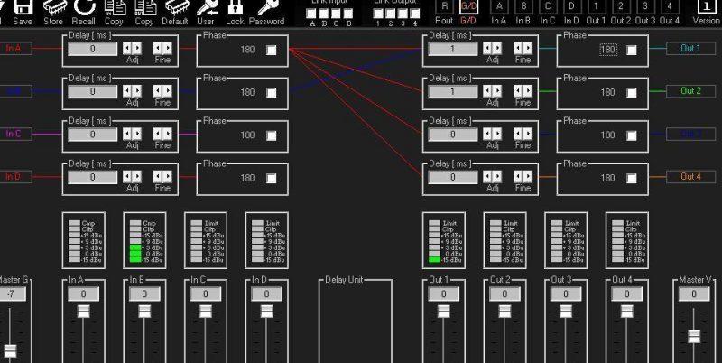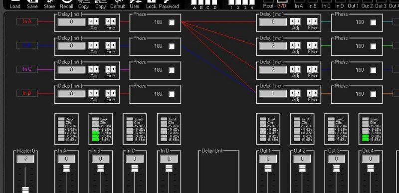 因为低音炮数量比较多,为使低频相位基本都吻合,避免干涉我使用了音频处理器使用延时功能做了下相位校准。