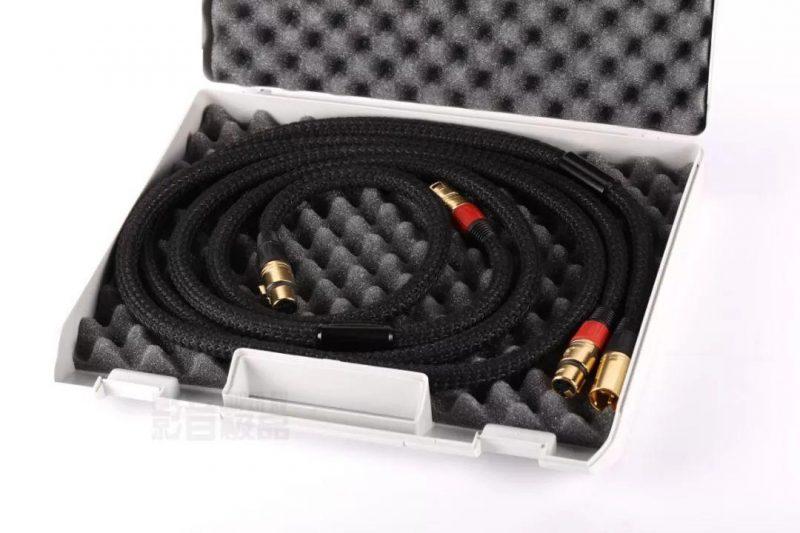 外包装用到带锁扣的手提箱,箱内的两层海绵垫有效地保护线材在运输过程中不被剐蹭损坏。HMS Armonia RCA/XLR喇叭线线身外观一致,二者的区别只在接头上。