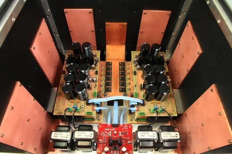 从内部布局和结构来看,Saxum属于垂直架构,箱体采用15mm厚度的航空级铝块构成,前后左右上下共6块重量级铝块,稳重的同时,也帮助屏蔽外界干扰,还能够帮助内部16对功率管均匀散热。