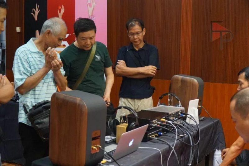 澳洲品牌AUDIOFLY展示區,一位觀眾正在試聽耳機