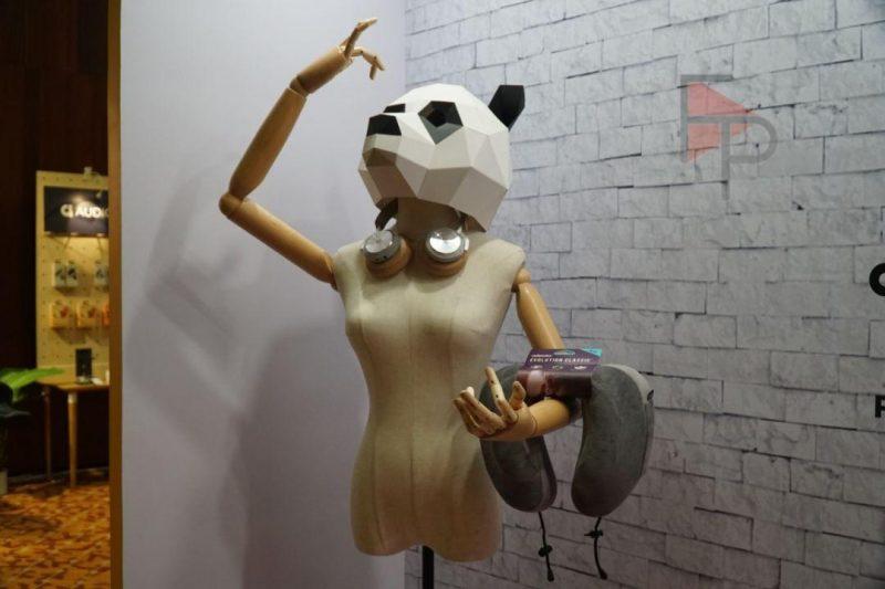 展位位於305,進門就能看到相當顯眼的「熊貓人」模特。手捧cabeau護頸枕,頸上掛着B&O H9i頭戴式耳機,一副趕着去旅行的樣子
