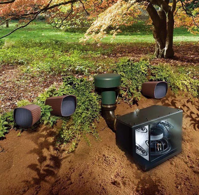 其中,ST系列主要用于户外,顶部蘑菇形状还起到防雨作用,是全天候的低音炮产品。它的工作方式是埋在地下,然后通过导管把低音传到地面,打在蘑菇顶上,然后在地面让低音散开。