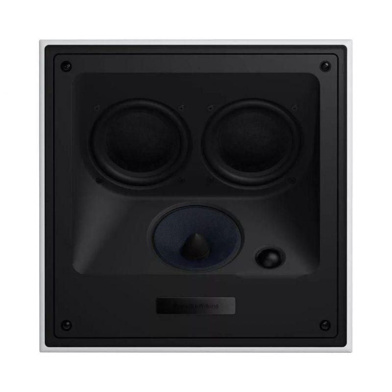 系统主声道及中置声道采用了共三只B&W CWM8.3D,这是一款三路设计的定制安装扬声器,其上配置了一个1英寸的钻石圆顶Nautilus™(鹦鹉螺)导管式高音单元、一个5英寸的Continuum™中音单元以及两个7英寸的Aerofoil™低音单元。
