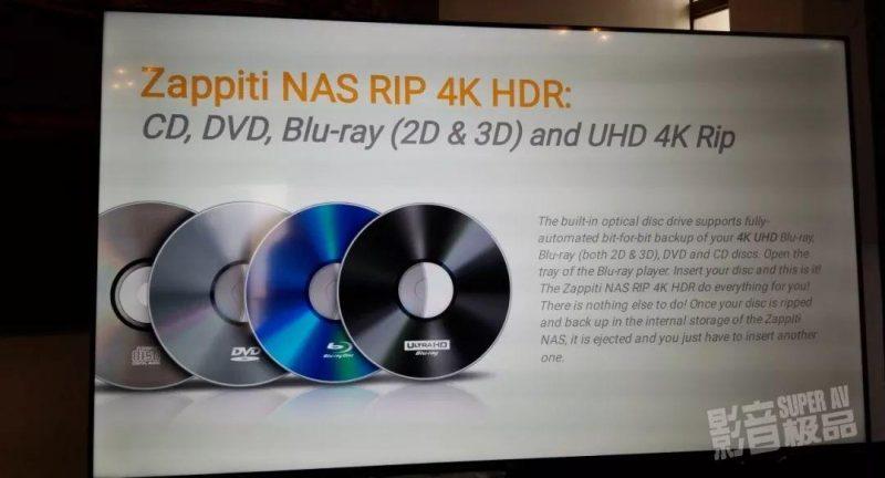 據現場介紹,Zappiti推出的 NAS RIP 4K HDR可以備份CD,DVD,藍光、藍光3D和4K UHD光盤。非常適合在整個家庭欣賞多房間的音頻和視頻。Zappiti NAS RIP 4K HDR完全是為將電影和電視節目可靠地存儲在現代硬盤驅動器陣列上而設計的,它沒有壓縮或質量損失。