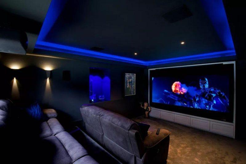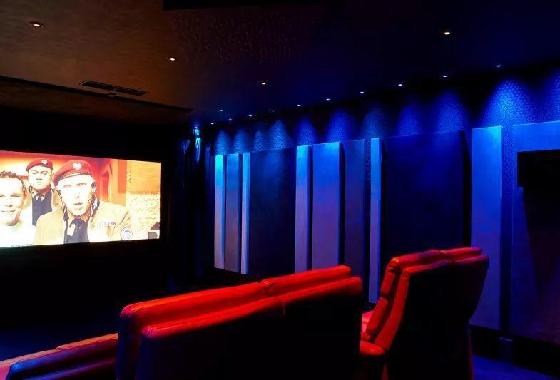 私人影院,為家庭住戶提供了一個舒適的娛樂場所,它讓用戶擺脫了公眾影院觀影的眾多限制,讓用戶觀影的時間、空間內更加靈活及舒適。在不少私人影院的設計案例中,設計師往往會有意控制房間在播放影片內容時光線的亮度,使得觀影者的目光盡量全程聚焦到電影內容上,這也是為什麼多數影院的設計會偏向深色基調。