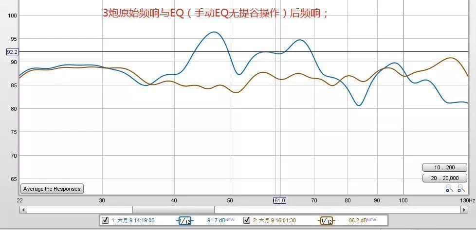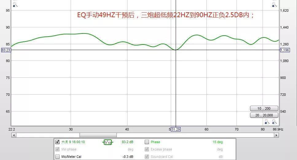 EQ手动49Hz干预后,三炮超低频22Hz到90Hz正负2.5dB内