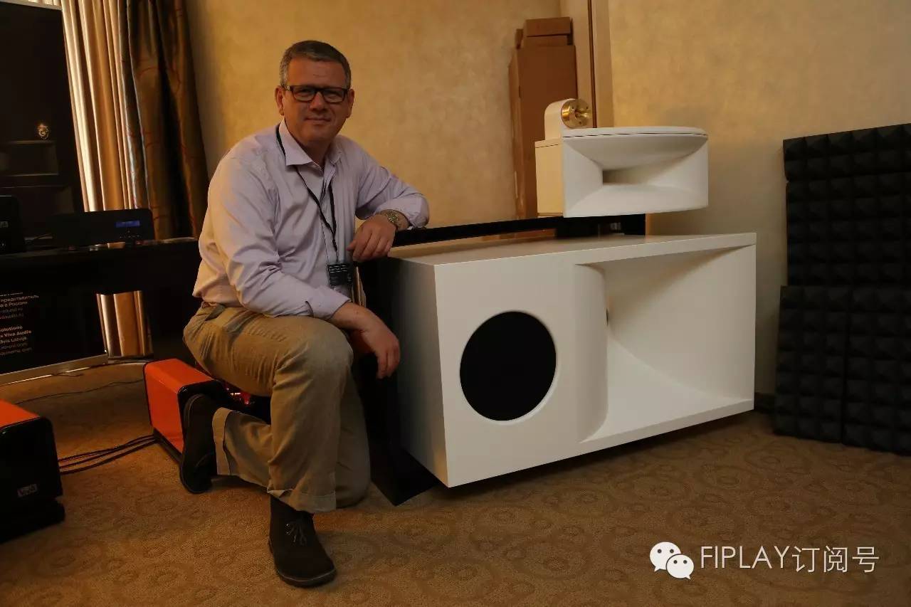 現場上,Viva Audio合伙人Sergey Porotsky先生與Nuda號角揚聲器合影