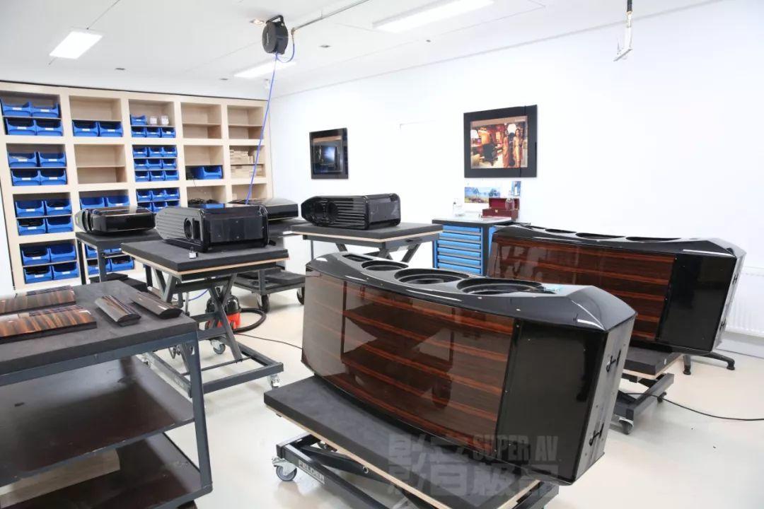 另外值得一說的是設計,很多KHARMA金主都喜歡揚聲器那種復古貴氣的設計特色,當中加入了很多的名貴木材作為裝飾,例如Exquisite Midi 1A箱體左右上下兩側都鑲有核桃實木片,很多人以為是調聲之用,實際上KHARMA更多是點綴和裝飾,把濃郁的古典氣息充分展現。在KHARMA很多設計上,都有以混合木料進行設計製作,並耗費整月時間進行噴漆和打磨箱體,達到更加古典和高雅的視覺效果,從而令KHARMA的貴族和奢華氣息盡顯。儘管這次並沒有到訪箱體材料的製作車間,但是通過這裡對安裝箱體的觀察,我堅信KHARMA在用料上的毫不妥協。