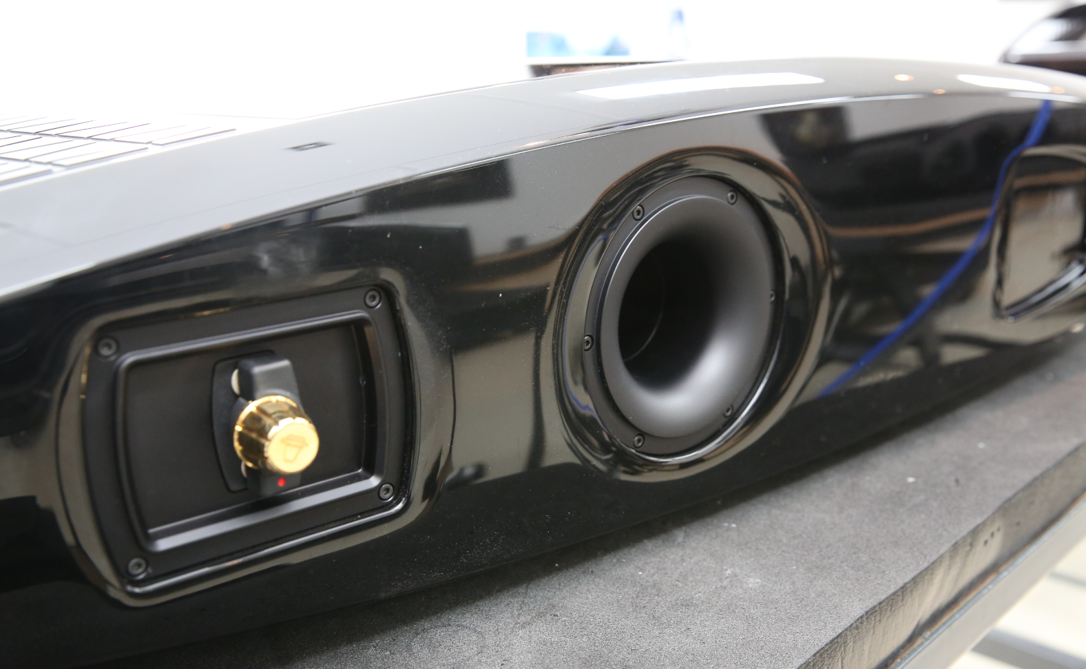 单元方面,早期使用的是德国Accutone陶瓷单元,随后改良增加振膜厚度换为黑色陶瓷单元。Charles表示陶瓷振膜有着极高频铃振问题,更达到了人耳聆听范围,而换成Accutone钻石振膜后铃振更在100kHZ以上,比起其他硬振膜材料会更好。受限于材料和振膜面积,低音单元难以一并使用陶瓷低音。不过作为扬声器生产厂家,核心的单元也逐渐自主研发。Charles也向我提及到碳纤维振膜KCD(KHARMA Composite Driver),也是继Omega-F Driver低音单元之后的最新突破,以此超越外购和替代陶瓷单元,当中的磁路系统也进行了重新设计。KCD全为自行设计,盆架也因应振膜而进行全新计量设计。