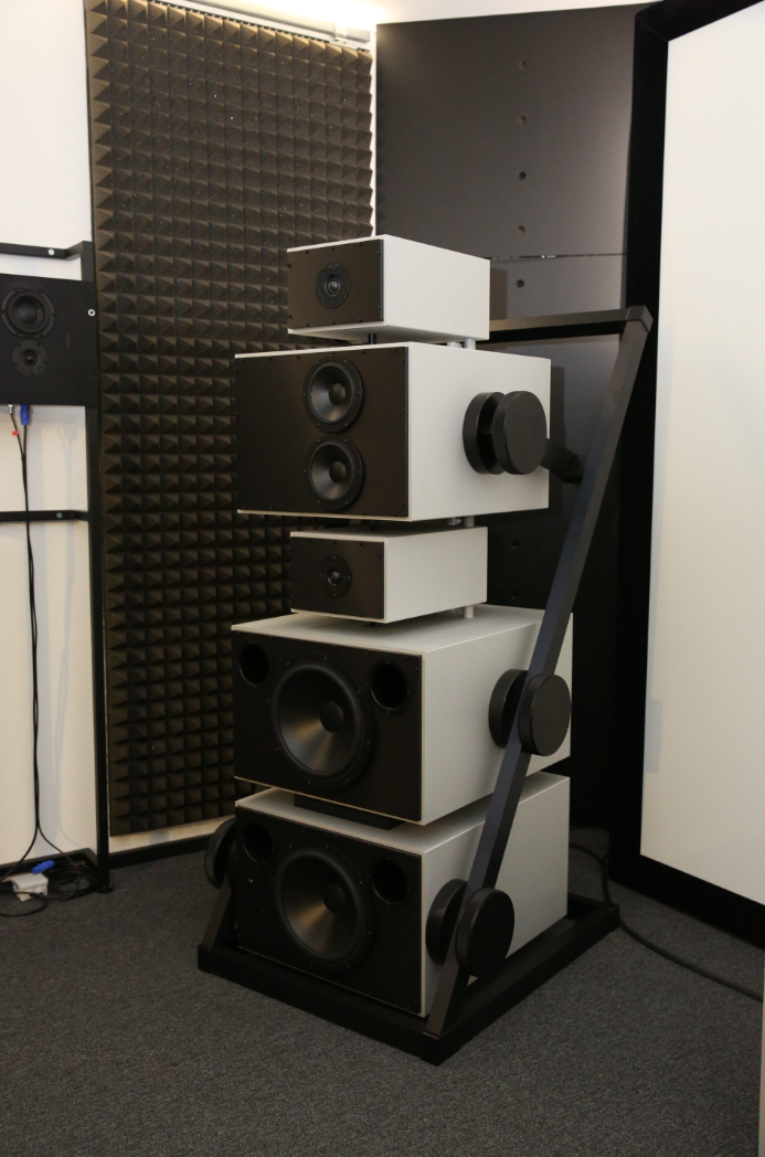 非常荣幸本社被邀请到瑞士一同参观Goldmund的厂房,随着总代理的步伐我们来到了Goldmund总部,最先参观的是音响展示厅,先不说其他的器材,笔者却被眼前的一对扬声器所吸引,这里摆放着一对全新而且还没对外公布过的器材,Apologue Anniversary(无源)座地式扬声器,这对扬声器暂时还没有对外公布,据了解会是全球限量销售,但更详细的信息有待Goldmund发布,据以往厂方的做法,这对扬声器能根据客人的喜好来订做喜欢的颜色,打造客户独一无二的专属扬声器。Apologue Anniversary的尺寸和之前有源版本的设计一模一样,没有一公分的差异,可是除了外观一模一样之外,内部结构就有很大差异了,毕竟这对还是无源设计,只是保留箱体外观及单元数量,内部即是重新打造的崭新扬声器。由上至下分别是超高音、一对中音、高音,以及一对超低音,轻松做到高音甜、中音准、低频强劲,这次Goldmund采用无源设计,原因是想把扬声器的负担全都给回整个音响系统,以往为了能流畅地驱动各组单元,扬声器才沿用有源设计。