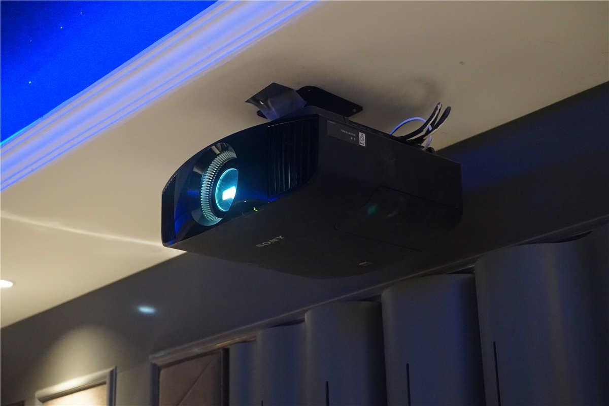 我們首先來到堪稱「影音發燒友終極夢想」的豪華影音室,這裡不僅採用高品質的影音設備,還擁有華麗空間設計和智能控制系統。這裡安裝了索尼4K SXRD家庭影院投影機VPL-VW558,4096×2160原始分辨率圖像,讓每一個細節都清晰和自然;其還具有HDR高動態範圍,實現更豐富色彩與更細膩圖像;除了增強畫質細節、提升影像至4K效果的「真實創作」超解像處理技術,VPL-VW558還具有特麗魅彩功能,顯示更寬廣和自然的色彩,Motionflow讓運動場景更平滑流暢,支持HDCP 2.2讓用戶享受最新4K內容,其還具有大範圍變焦和位移鏡頭,內置自動校準,無論是畫質還是安裝都表現完備。
