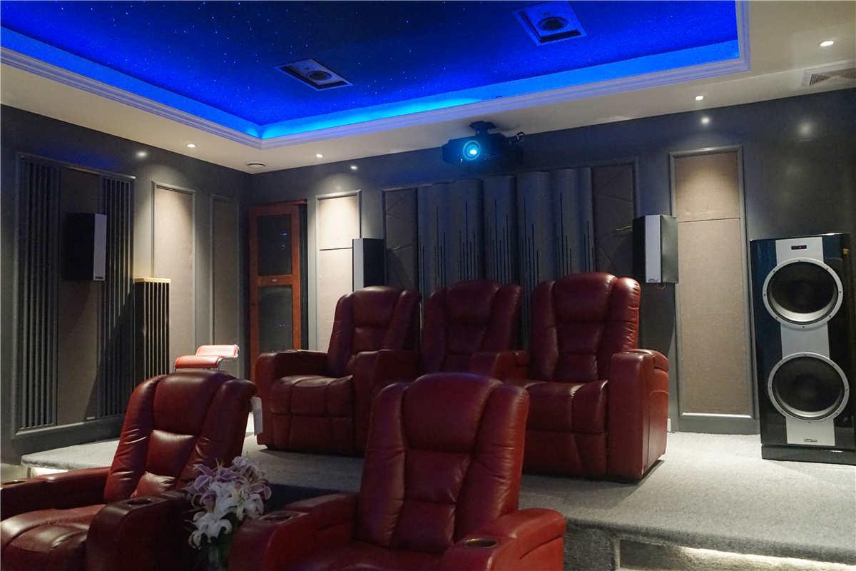 索尼VPL-VW558在200英寸編織透聲幕上投影4K震撼畫面,這個影音室配備了全景聲音響,共17隻德國Teufel揚聲器,組成了一套完美的DOLBY ATMOS家庭影院音頻系統,讓觀影更具沉浸感。最引人注目的是影音室的星空天花板燈光設備,流光溢彩的繁星點點讓人彷彿置身靜謐的太空。