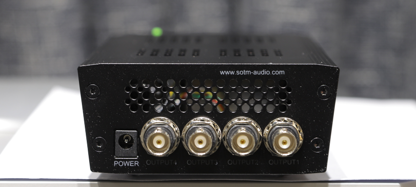 这款时钟具备10MHz的时脉输出,可以同时提供4部设备同步时脉使用。据代理介绍,这款产品针对BNC同轴阻抗具备两个版本,一种是常规的75Ω,另一种是50Ω,玩家在选购过程中必须要了解清楚自家系统中所存在的情况而对应购置。要特别提醒的是,若系统有使用时钟的,请特别留意一下其阻抗规格是50Ω还是75Ω的,现场所使用的阻抗为50Ω,器材包括线材请尽量都统一规格才会有最好的声音效果,当然若为不同阻抗值时,声音可能会受到影响,至于影响程度就视系统情况而不同了。厂家厉害之处还在于,即使如此细微的配件时钟连接线和网线也有推出,并且线材上有独家滤波组件,对于预算有限的买家也可以分步购买,渐进式发烧。