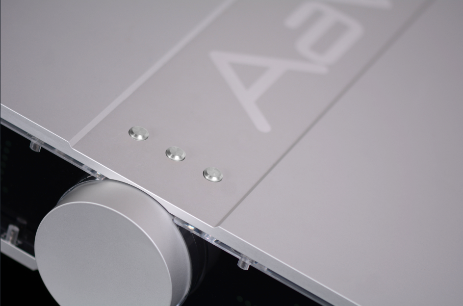 C-150前级放大器的外形非常具有个性:看起来体积不大、高度还不到10cm,顶盖、侧板都是厚实的铝板,与一般平价器材的铝挤压盖板相比,坚固结实得多。面板正中是一只巨型的调节旋钮,与上方顶板相应位置的三只轻触式按键配合使用。最夸张的是它的面板也是巨大的液晶显示屏,圆形发光点构成字母和数字,既有未来的科技感,看上去也极为显眼,哪怕你距离机器5米开外,也可以看清这些字样,大大提升了易用度。另外,在顶板正中,蚀刻有Aavik品牌名称,箱体两侧则是经过CNC精密加工的翼形大型散热片,整体金属加工质感相当精致,细节加工以及阳极处理后的喷砂涂装都具有高超水平。