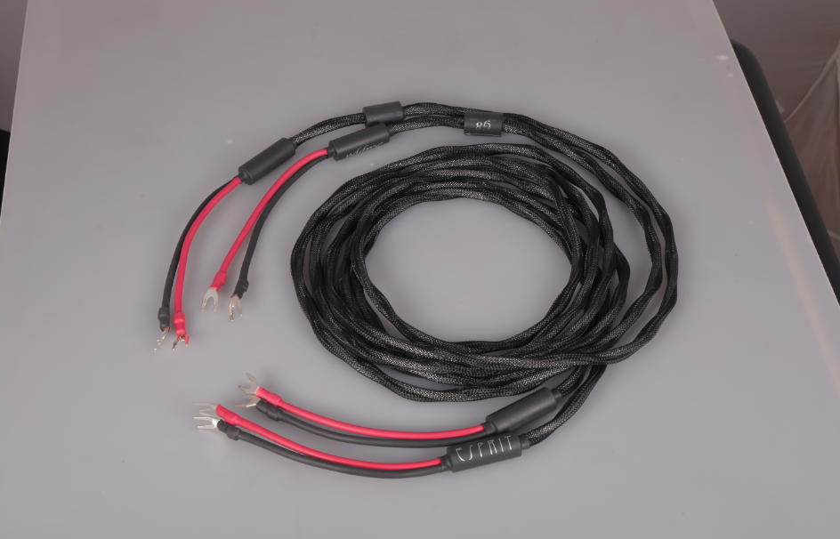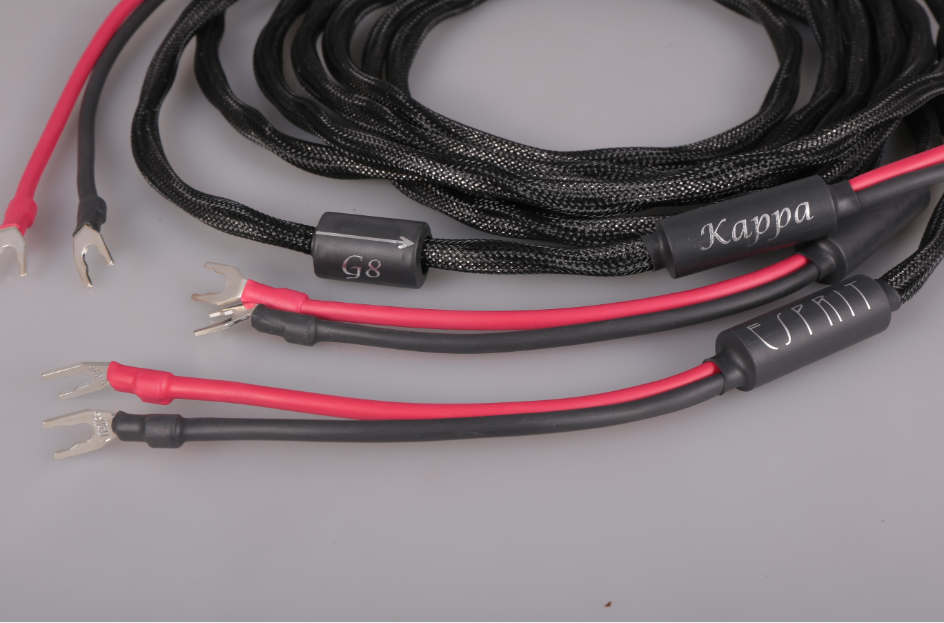 而本次试用Kappa系列的喇叭线,这个系列无论是讯号线疑惑是喇叭线,导体均采用720股纯铜导体绞合而成,线身上没有小盒子,但在线的一端套上了起滤波作用的磁环,而线身绝缘层采用空气不对称介质,也就是说绝缘层没有完全包覆导体,而是以尽量小的接触保持线材结构,从而降低绝缘物料介电常数的影响。讯号线的RCA端子讯号电极采用纯铜40Micron厚镀银,确保极佳的触点传输能力。喇叭线则采用20Micron厚镀银的香蕉插(提供Y型叉选择)。