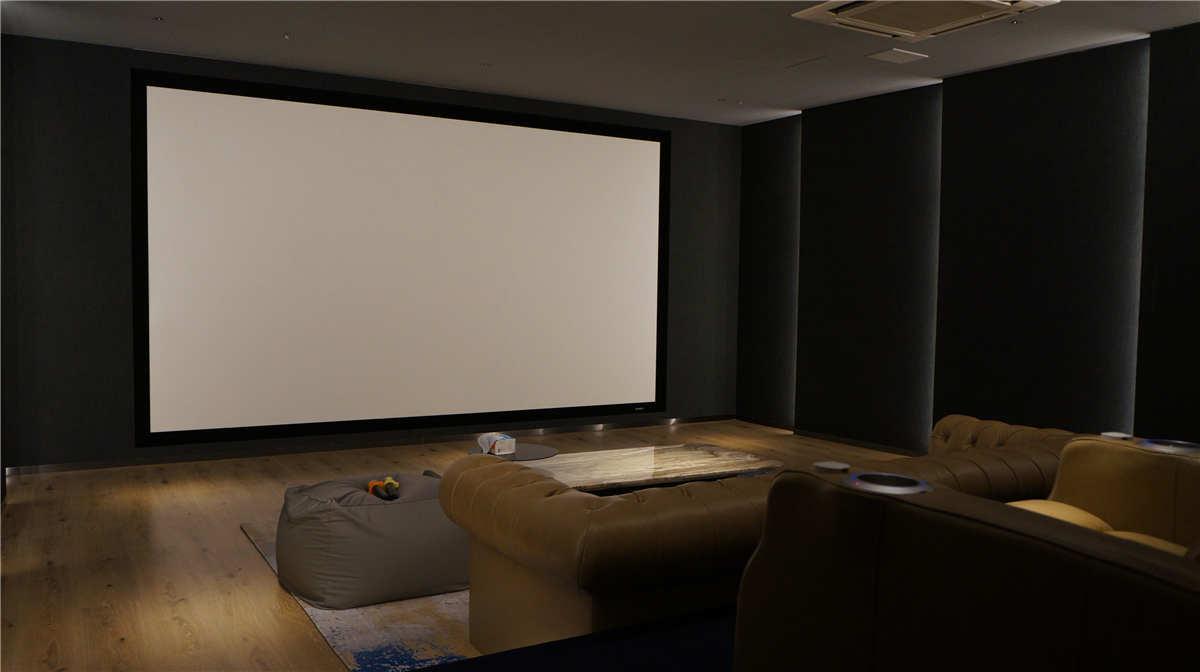 真正的私人影院就在隔壁,空间跟以前的一样,面积接近47.09平方米(7.84m×6.04m),比例完美,接近1.3:1,于THX推荐的空间比例基本一致,已经很符合专业影院的规范。因此在对于后期的设计、施工以及声效方面都奠定了基础。胡特表示这个私人影院是整个体验区的“王牌”,当中以真材实料进行打造,务求呈现出不一样的影音体验。不过重要的事情还需要强调,整个影院使用了瑟尔影音代理的拳头产品uandksound(英国之声)打造,对于整个声学构建方面也以不妥协的方式进行设计,从天花到地面以及两侧的声学物料都进行全方位的加持和打造。