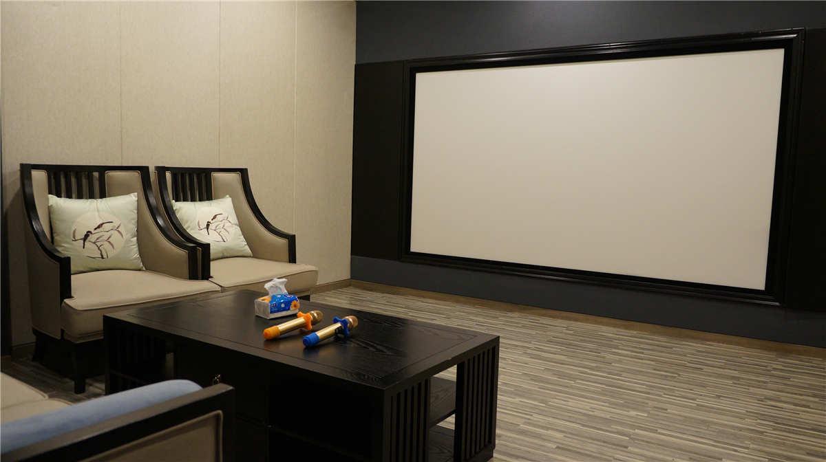 这个小客厅,以清新风格为主。这里的功能十分齐全,包括KTV、游戏、电影等娱乐功能为主,因此整个模拟客厅的环境打造得比较轻松惬意,没有黑沉沉的影院表现。总的来说,这个空间以轻影院为主,能适应绝大部分家庭环境的享受。