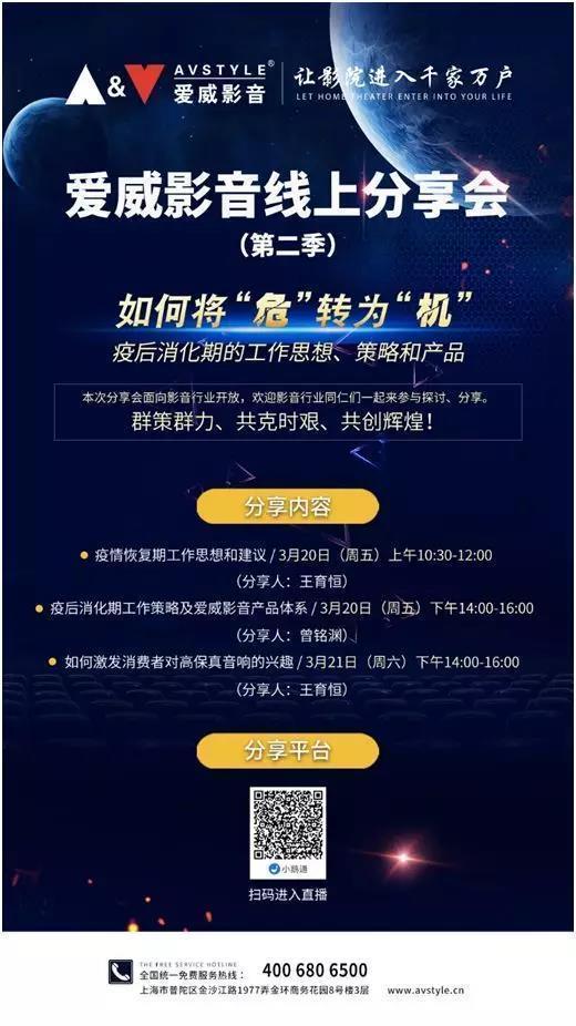 业界头条 爱威影音线上分享会第二季:如何将“危”转为“机” 作者 Fi-Play 在 2020年3月18日 更多在 业界头条: Innuos音若思发布全新旗舰数播NAZARE 2025年12月1日 YG Acoustics旗舰Ultimate Titan泰坦中国首发会 2025年11月29日 日本Soul Note发布最新的第二代全线产品系列 2025年11月24日 爱威影音自疫情期推出线上分享会以来,获得广大合作伙伴的关注与追捧,不少小伙伴向他们表示意犹未尽。 3月20日—21日,他们将开启爱威影音线上分享会第二季,一起探讨如何将“危”转为“机”,疫后消化期的工作思想、策略和产品。本次线上分享会为三场,由爱威影音王育恒先生和曾铭渊先生一同主持分享,为您带来不一样的直播体验。 此次爱威影音分会面向影音行业开放,欢迎影音行业同仁们一起来参与探讨、分享。 群策群力、共克时艰、共创辉煌!